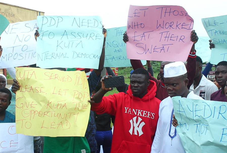 The members of the Peoples Democratic Party (PDP) in Ayedire local government and Ayedire South LCDA in Osun State staged a protest over the alleged imposition of the candidate for the local government chairman post which is about to be appointed.