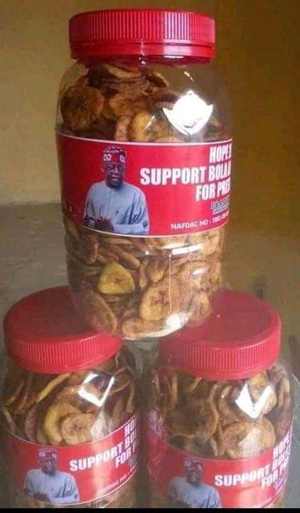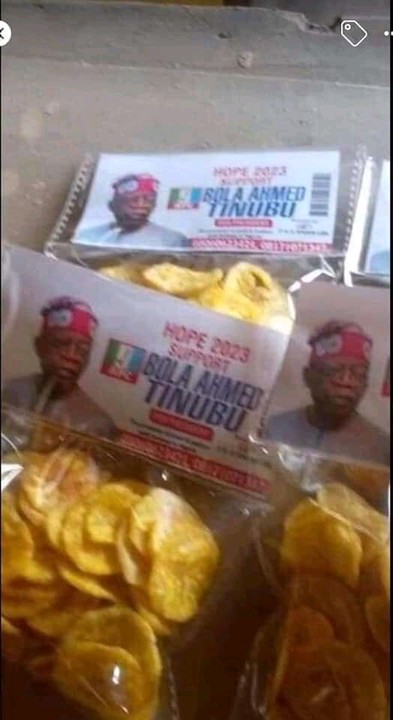 Ahead of 2023 Presidential Election, Photos Of Bola Ahmed Tinubu Plantains Chips has surfaced Online