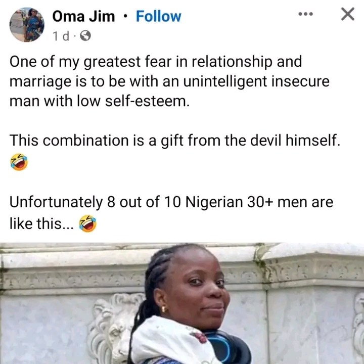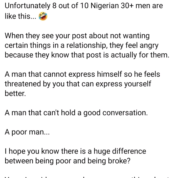 She added: “Unfortunately 8 out of 10 Nigerian 30+ men are like this…”