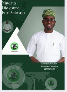 The General Secretary of the “Nigeria in Diaspora for Asiwaju(NDA)” in North America(USA and Canada); and a staunch member of the All Progressives Congress (APC), Barr. Bimbo Amusan, has felicitated with the Presidential Candidate of the ruling APC on his well-deserved nomination as the Flag bearer of the great party.
