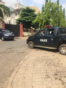 Dozens of armed policemen in four patrol vans have taken over the entry and exit points on Blantyre Street where the All Progressives Congress National Secretariat is located in Abuja.