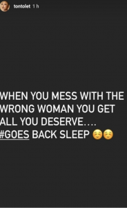 Nollywood actress, Tonto Dikeh has shared a post about ‘messing with the wrong woman’ on her Insta stories.