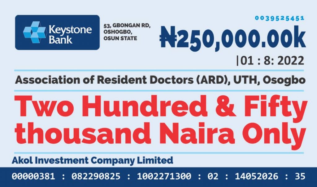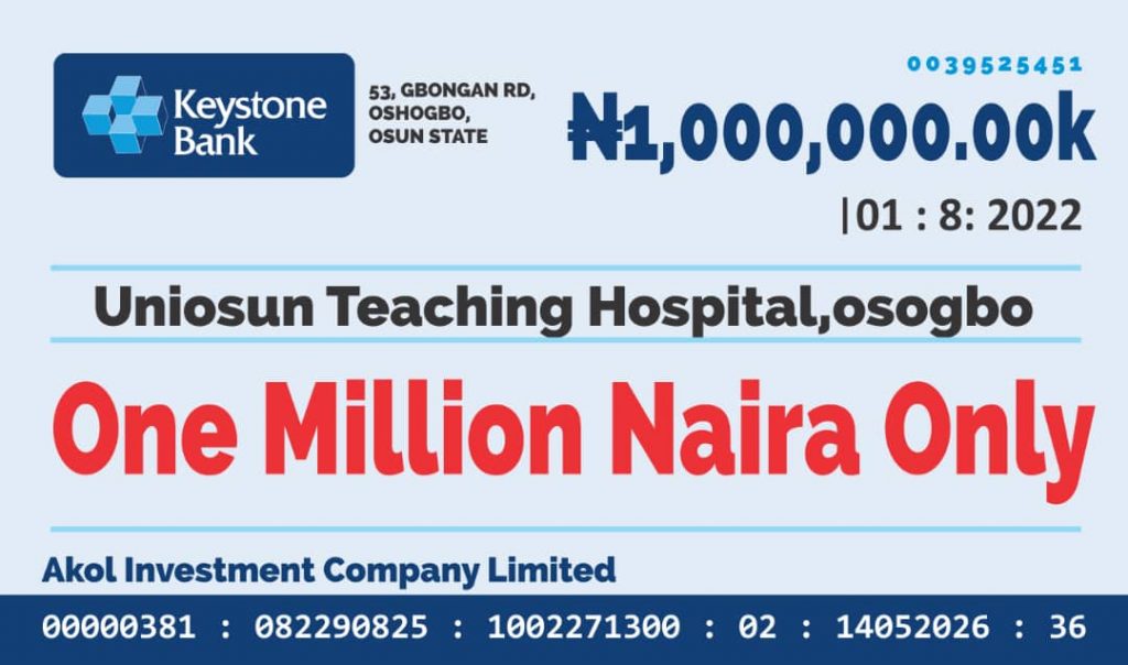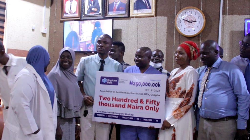 The management of Akol group of companies, on Tuesday, donated cash and medical items to Uniosun Teaching Hospital and Association of Resident Doctors, AMILOADED reports.