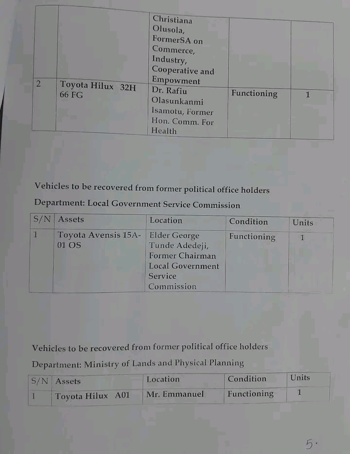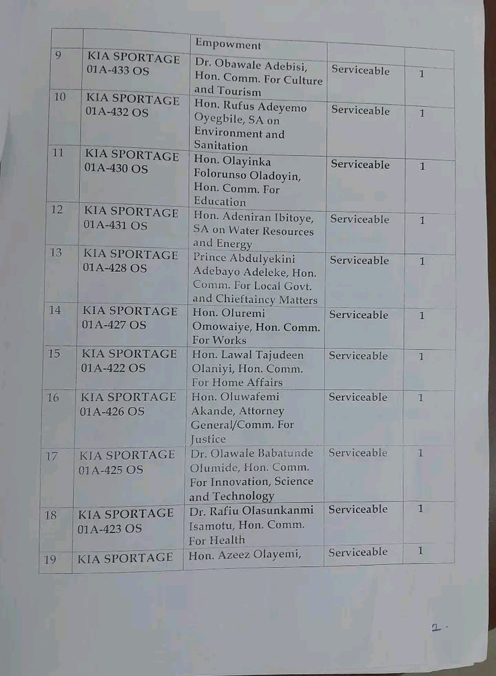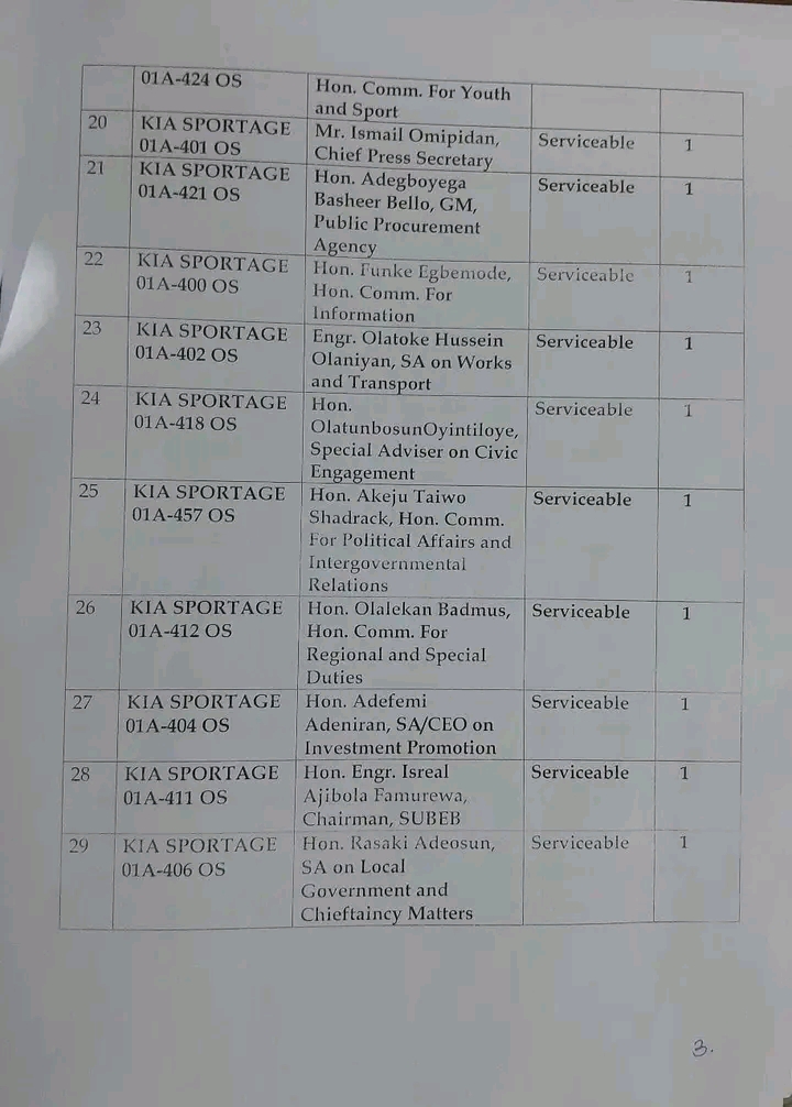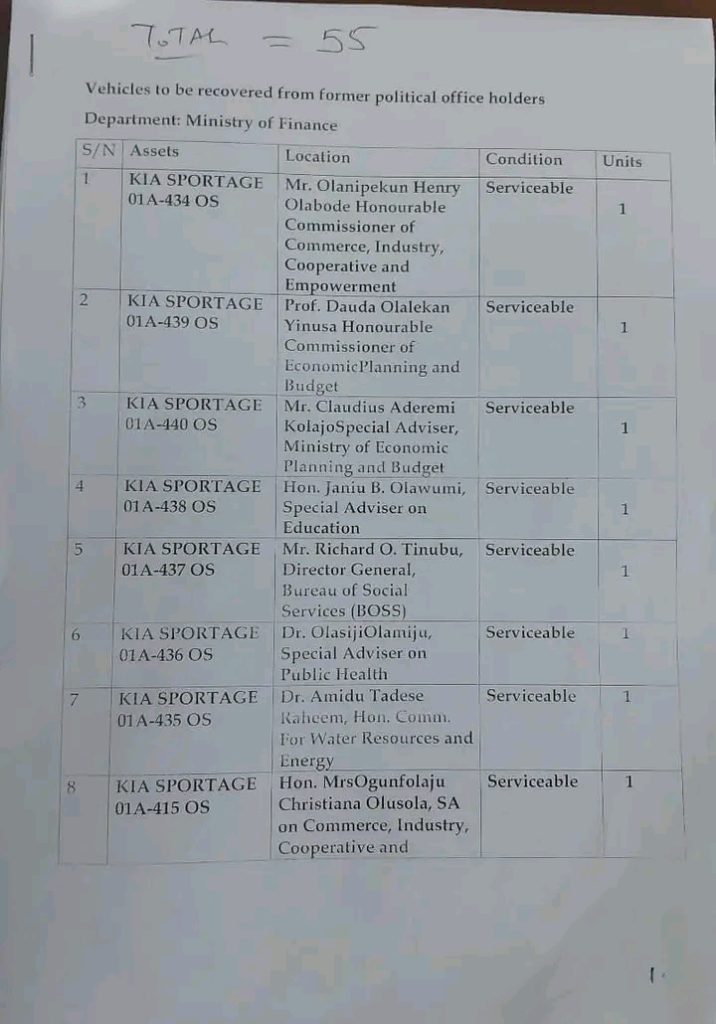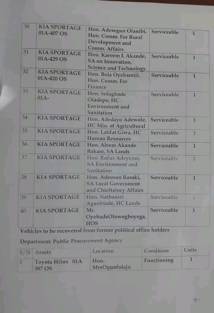 “Ex-officials holding the vehicles include Oyetola’s commissioners and Special Advisers, Head of Service and chief executive of some government agencies.