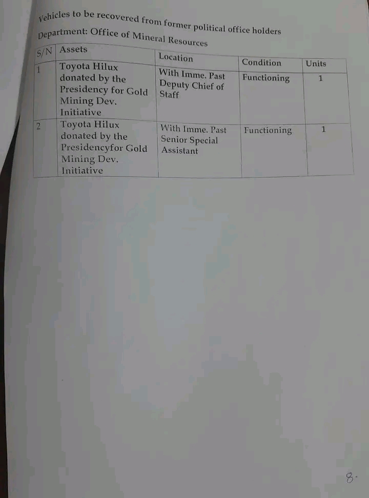“These categories of ex-officials are directed to return the vehicles in their possession before the administration triggers repossession operations.”