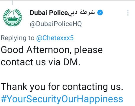 The Dubai Police responded to the tweets, asking Chetaxxx5 to send a DM.