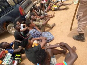 The suspects who were caught on Wednesday at different locations in Osogbo during petrol team by Amotekun corps had weapons such as axes in their possession.