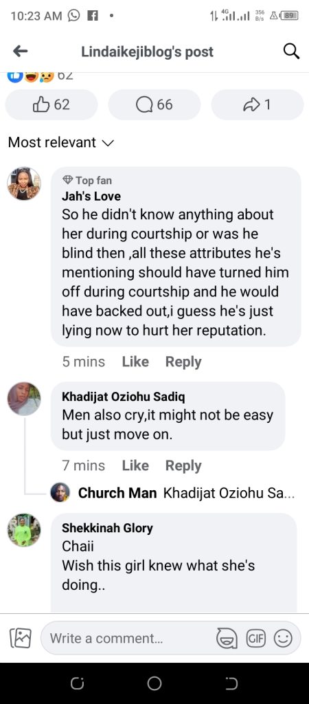 “Bought her clothes and bags, including expensive human hairs she’s using without sleeping with her then. I later proposed, and she fully accepted. We later did a legal introduction to traditional and white weddings in Benin City.