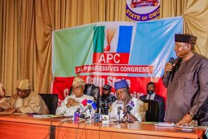 The meeting was attended by all the party leaders in the State, including Governor Adegboyega Oyetola, three former deputy governors -Senator Iyiola Omisore, Prince Sooko Adewoyin and Mrs. Titi Laoye-Ponle – and Osun Speaker, Timothy Owoeye, Senate’s spokesman, Senator Ajibola Bashiru, members of the National Assembly and the lawmakers from the State House of Assembly, among others.
