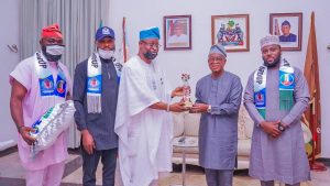 Other who accompanied Prince Olatunbosun to meet the governor in Abuja Prince Olatayo T. Adepuji, Semire Daura, Simeon Reuben and Aliyu Daura.
