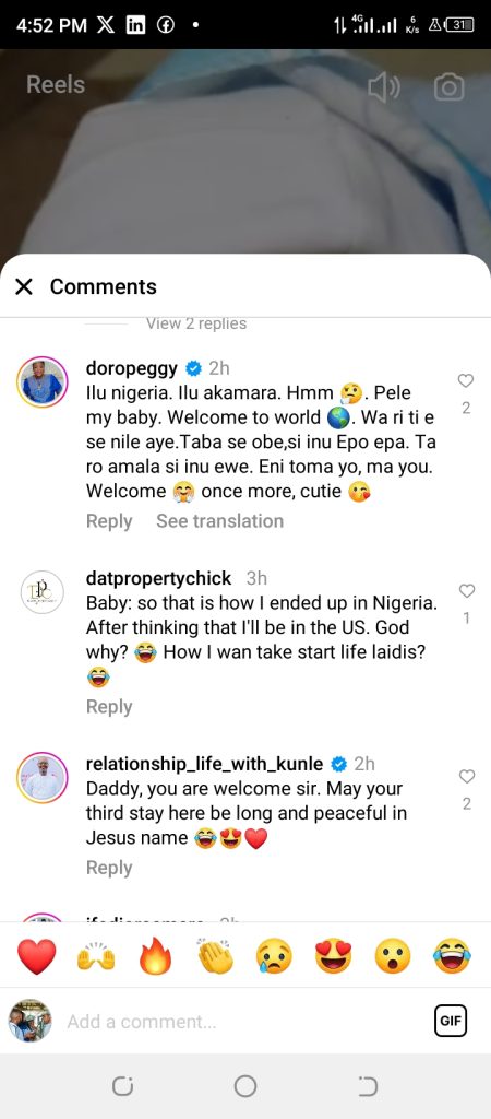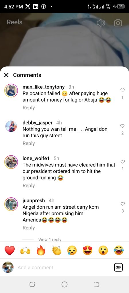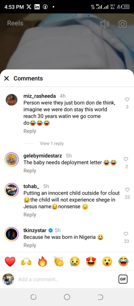Netizens has taken to their different social media page to interpret the action of the newborn baby: