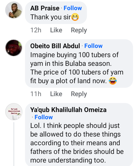 It’s said that the traditional marriage requirements in Kogi include 100 tubers of yam.