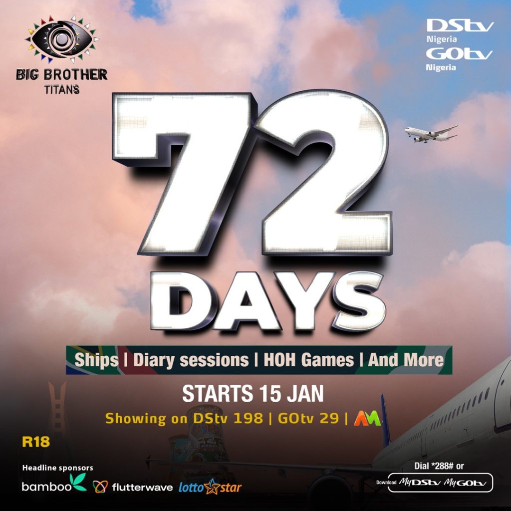 The last man or woman standing will walk away with 100,000 dollars and other mouthwatering prizes. Big Brother Titans is proudly sponsored by Flutterwave, Bamboo, and Lotto Star.
