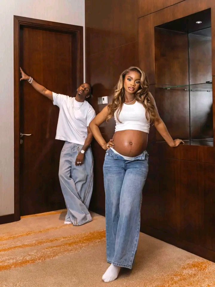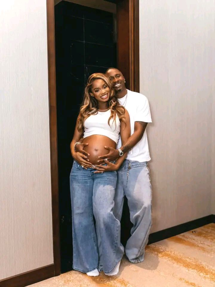 Also the couple made the announcement on Instagram on Thursday , sharing a maternity photoshoot featuring Priscilla’s growing baby bump.