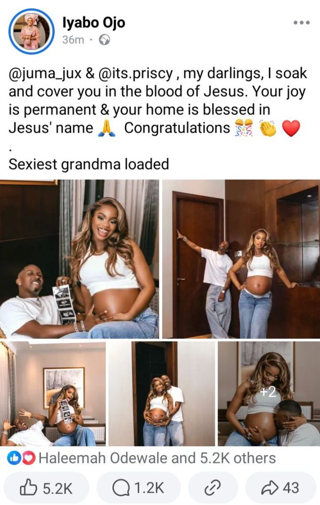 Nollywood star Iyabo Ojo has shared exciting news about her daughter’s pregnancy.