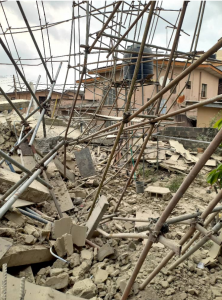A resident of number 29, Lawani Street, a street off the scene of the incident told our correspondent that her car was affected last year, when a section of the building collapsed, however, construction continued despite the police being called in.