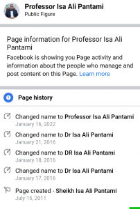 The Nation also observed that on several awards and fliers posted on the page, the title of ‘Professor’ had since been added to his name.