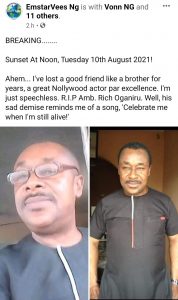 Another veteran Nollywood actor, Rich Oganiru is dead.