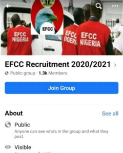 The Economic and Financial Crimes Commission, EFCC, has alerted Nigerians over a group on Whatapp dedicated to EFCC Recruitment 2020/2021.