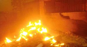 According to a source who spoke with our correspondent from the INEC office said the fire is suspected to be cause by an electric spark within the container.