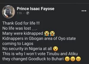 “Kidnappers in Gbogan area of Oyo state coming to Lagos