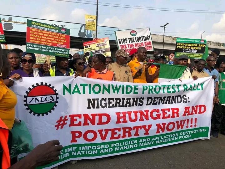 Members of the Nigeria Labour Congress, Lagos State chapter on Tuesday, started a two-day nationwide protest calling for an end to hunger and poverty in the country.