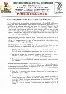 “In compliance with the interim injunction of the court pending the determination of the substantive suit and in order to enable more Nigerians to register, the commission continued with the CVR beyond 30th June, 2022.