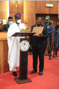 President of the Senate, Senator Ahmad Lawan on Wednesday sworn Agom Jarigbe as a replacement for Stephen Odey.