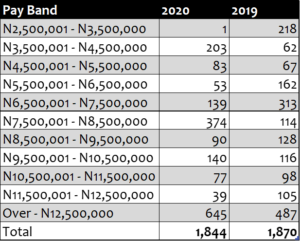 • Finally, another 158 employees were moved to a salary scale of above N12.5 million per annum, its highest pay bracket.