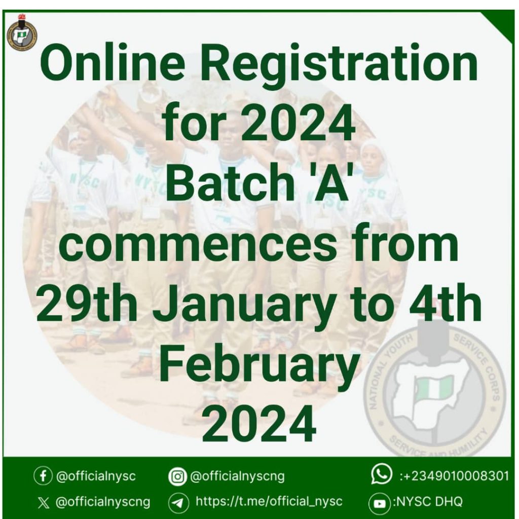 A checks by AMILOADED Correspondent on their official website around 9:00am on Tuesday shows that the registration proper has commenced for the 2024 BATCH ‘A’ Prospective Corps Members.