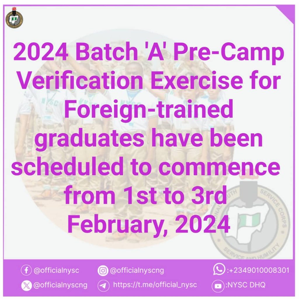 The National Youth Service Corps, NYSC , has opened portal for 2024 BATCH ‘A’ Stream 1 registration, AMILOADED reports.