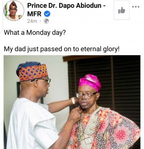 “Further announcements will be made by the family in due course,” Abiodun said.