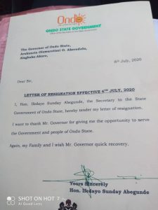 Secretary to Ondo State Government, Ifedayo Abegunde, has resigned his appointment.