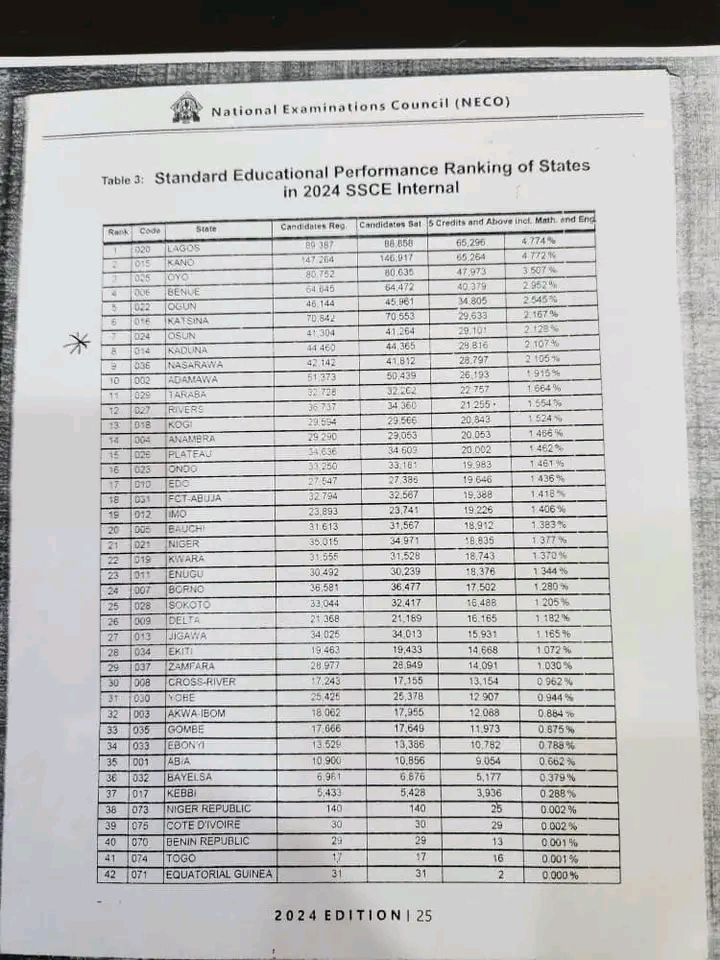 The newly released “Standard Educational Performance Ranking of States in 2024 SSCE” by NECO shows Osun achieving a remarkable academic comeback from its low rating in early 2022.