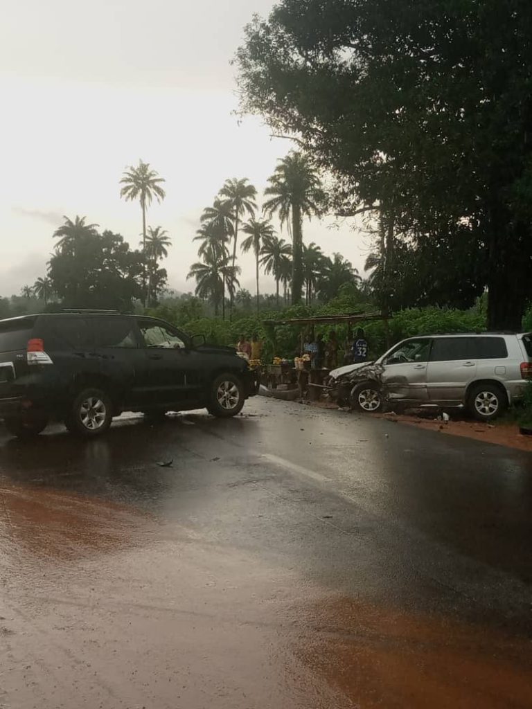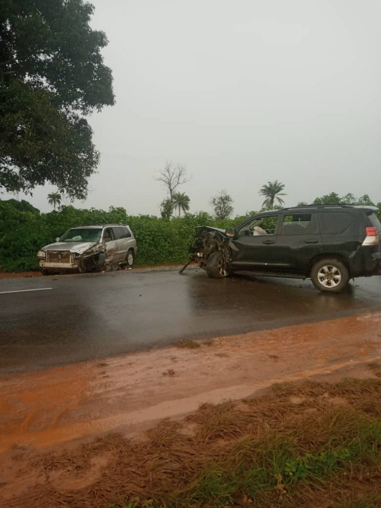 The accident occured along Osogbo-Ilesa road when a vehicle in the opposite direction rammed into the Convoy thus resulting in an head-on collision.