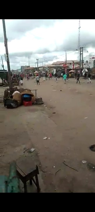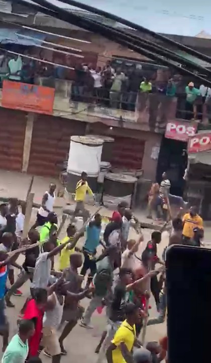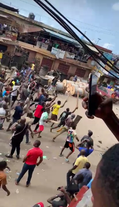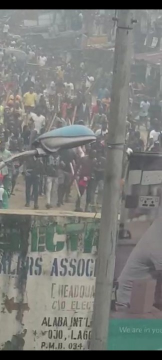 Pandemonium broke out at the popular Alaba International market in Lagos this morning October 19, as traders clashed with area boys.