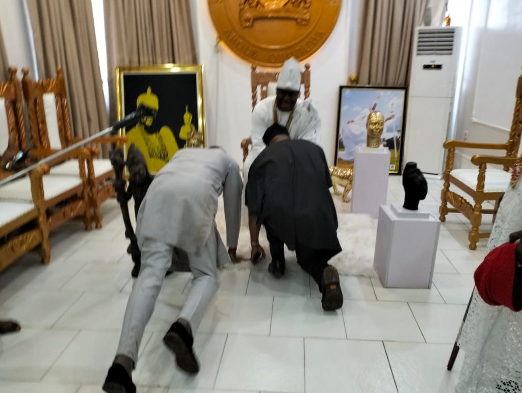 Obi was cheered as he entered the palace with the Ooni in the video.