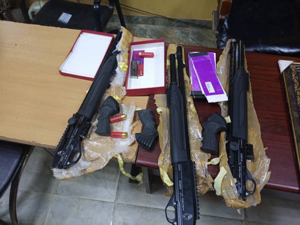 Officers found three pump action rifles, one Beretta pistol magazine, one expended 9mm ammunition, one expended and three live cartridges and a picture frame.