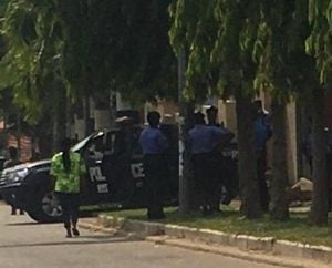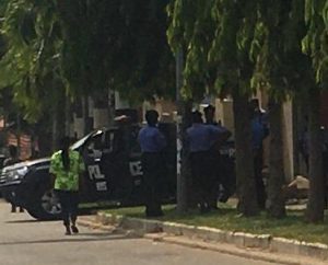 Dozens of armed policemen in four patrol vans have taken over the entry and exit points on Blantyre Street where the All Progressives Congress National Secretariat is located in Abuja.