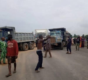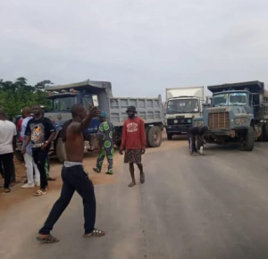 Motorists and residents around Onigari at the Ogun State end of the Lagos-Ibadan Expressway, have blocked the road after an accident involving a truck and some strayed cows.