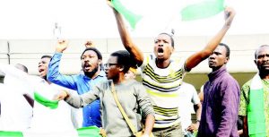BREAKING: Scores Of Protesters Block Abuja Airport Road