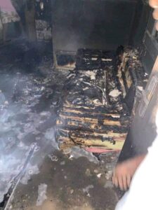 Eye Witnesses said the house was set on fire around 3am some minutes after electricity was switched off around the whole area.