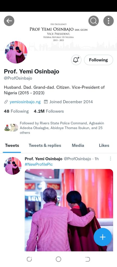 Popular microblogging platform, Twitter, on Monday removed the verification tag attached to the account of the former Vice-president of Nigeria, Prof. Yemi Osinbajo.