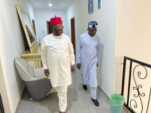 A chieftain of the All Progressives Congress and Presidential hopeful, Asiwaju Bola Tinubu, and the Governor of Ebonyi State, Dave Umahi, on Friday met in Abuja.
