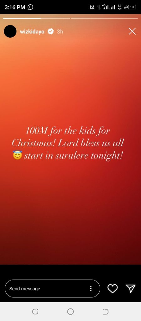 BREAKING: Wizkid Announces N100m As Christmas Gift To Children