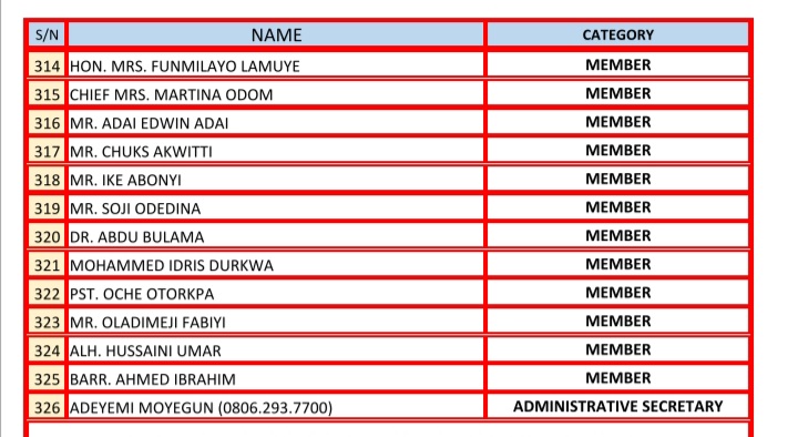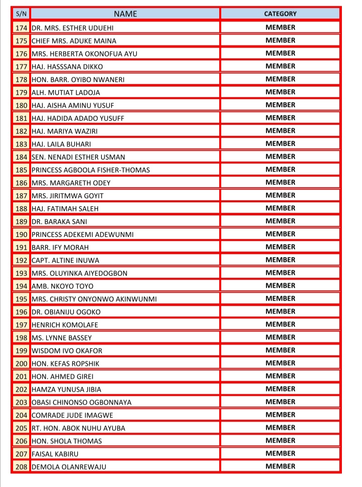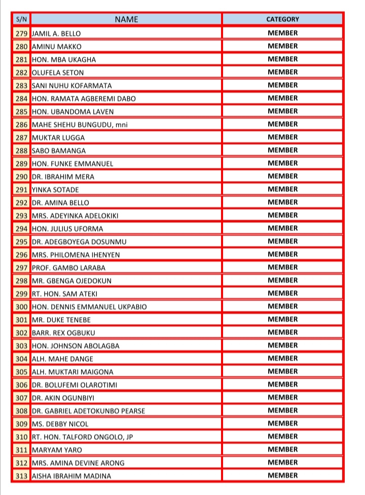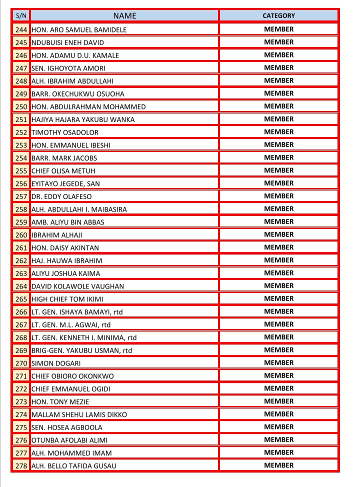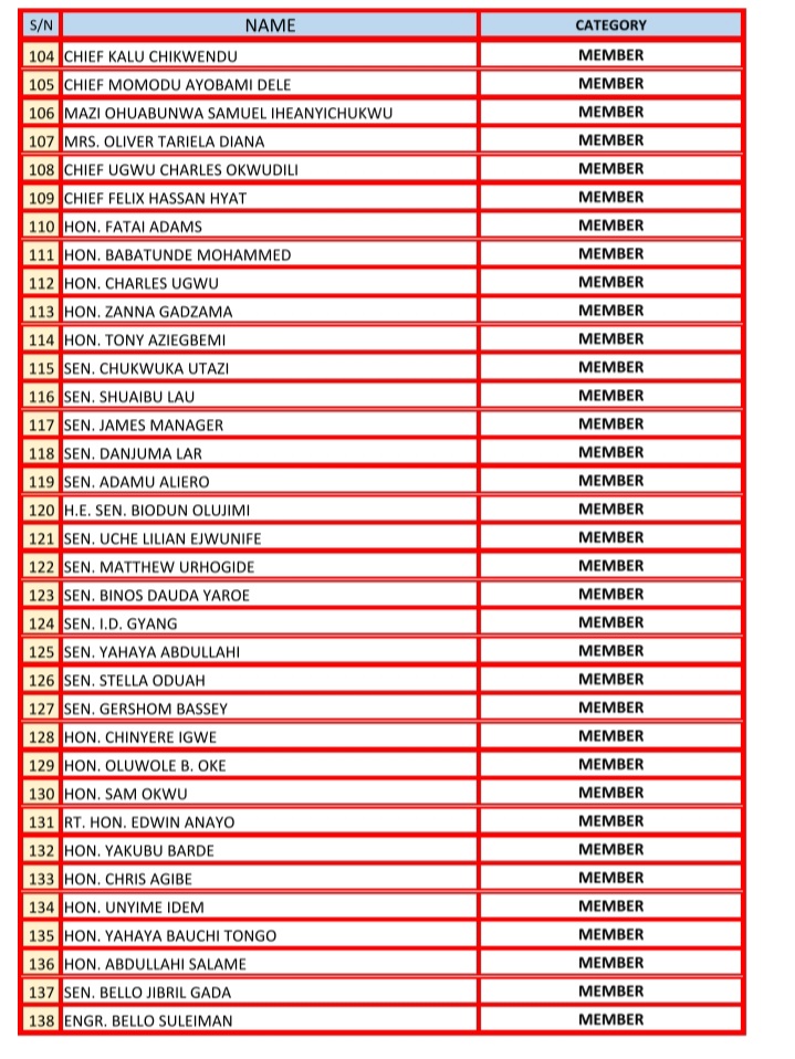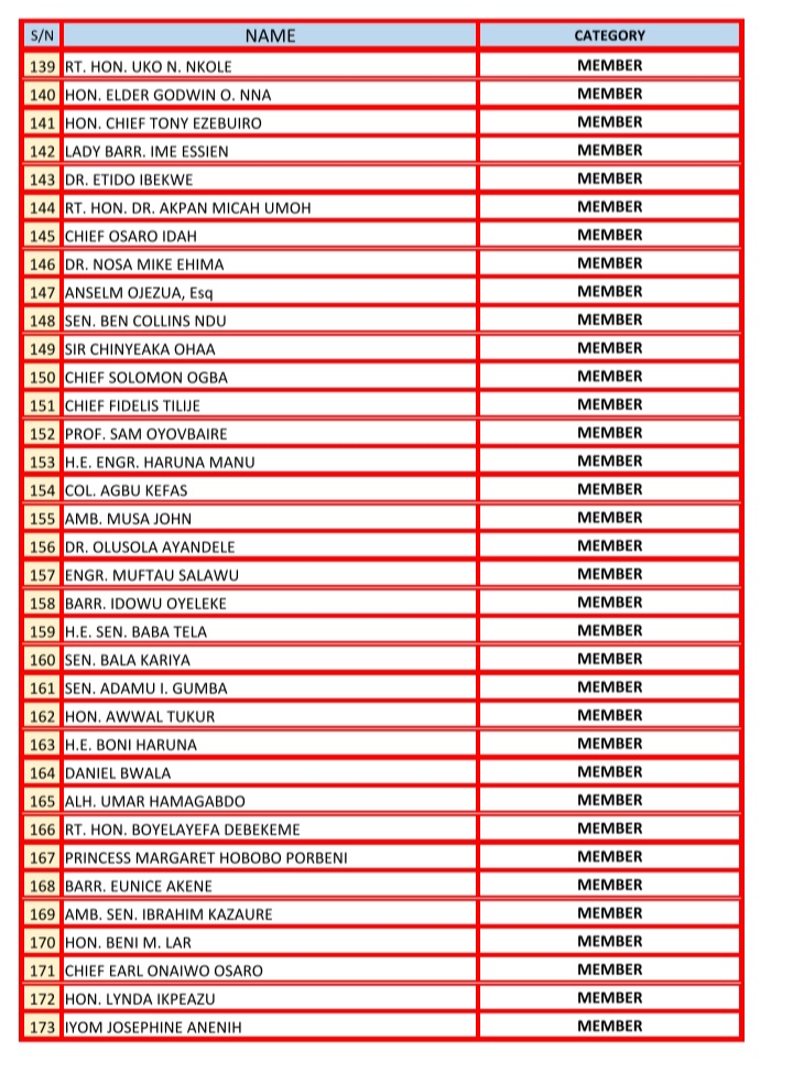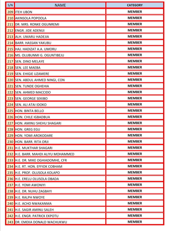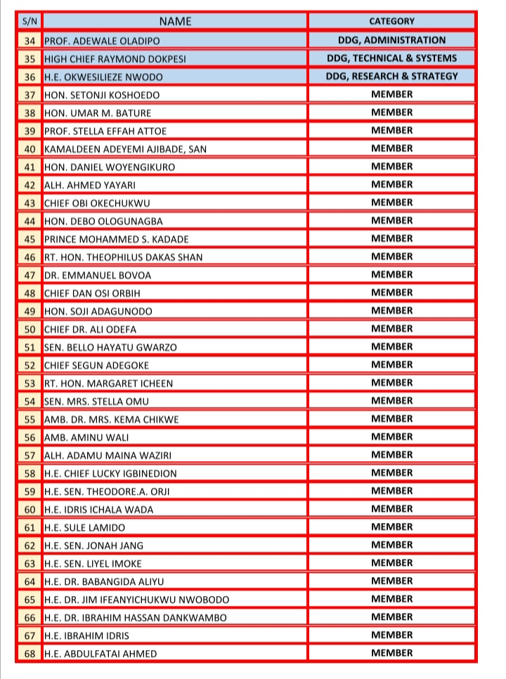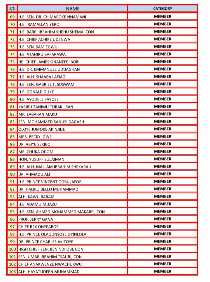 The list also has Sokoto State Governor, Aminu Tambuwal, as its Director-General.