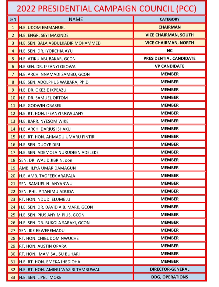 The Peoples Democratic Party PDP has constituted its 326-member presidential campaign council, Thursday evening.