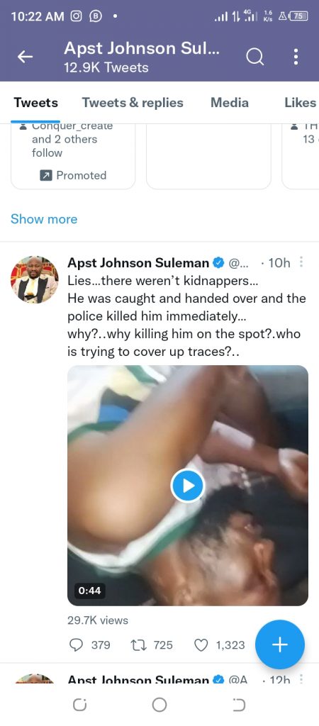 The cleric’s tweet read, “Lies…there weren’t kidnappers… He was caught and handed over and the police killed him immediately. Why? Why killing him on the spot? Who is trying to cover up traces?”