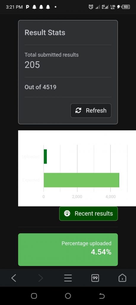 A report from the portal on Saturday revealed that 205 results out of 4,519 polling units where elections were conducted in the state have been uploaded.