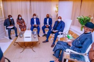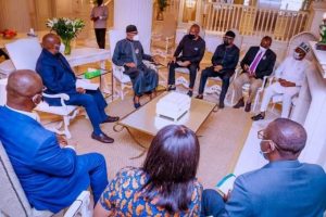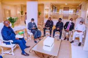 The President, Major General Muhammadu Buhari (retd.) on Sunday held a meeting with the President of the African Export-Import Bank, Benedict Oramah, in South Africa.